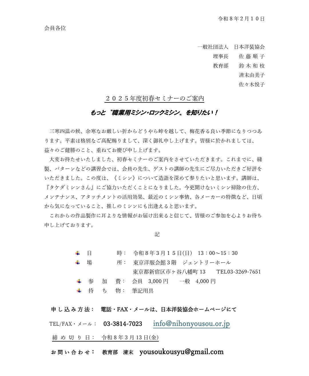 申し込み締切  3月13日(金)