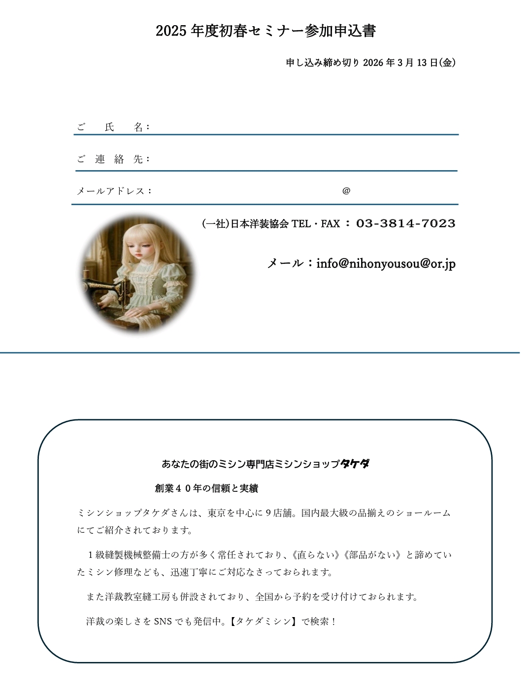 今回は日暮里にあるタケダミシンさんをお迎えしてのセミナーです